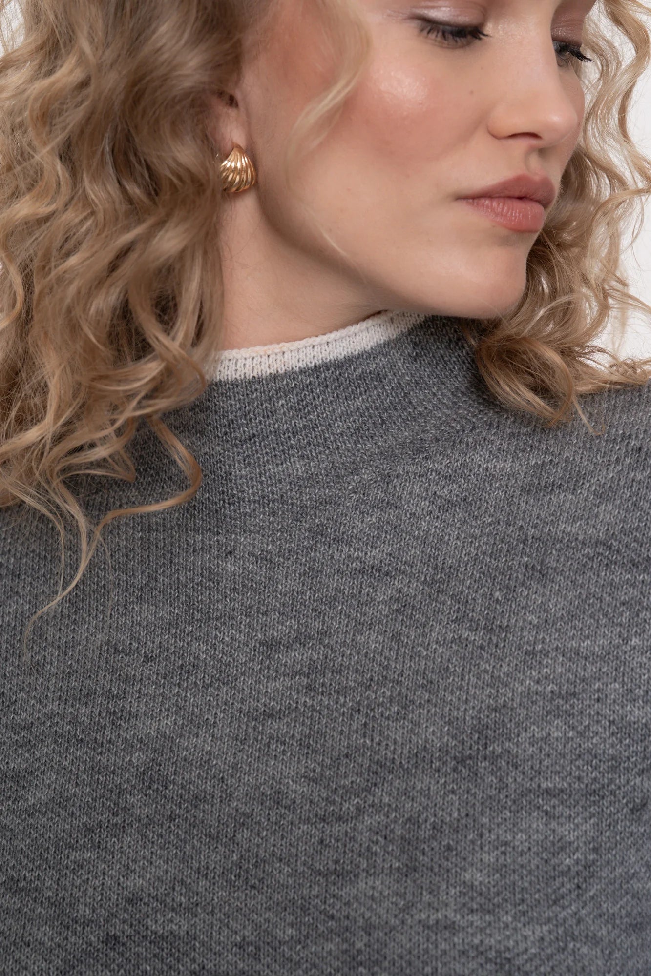 Geisha Damenstrickpullover in Grau mit Stehkragen und Kontrastdetails